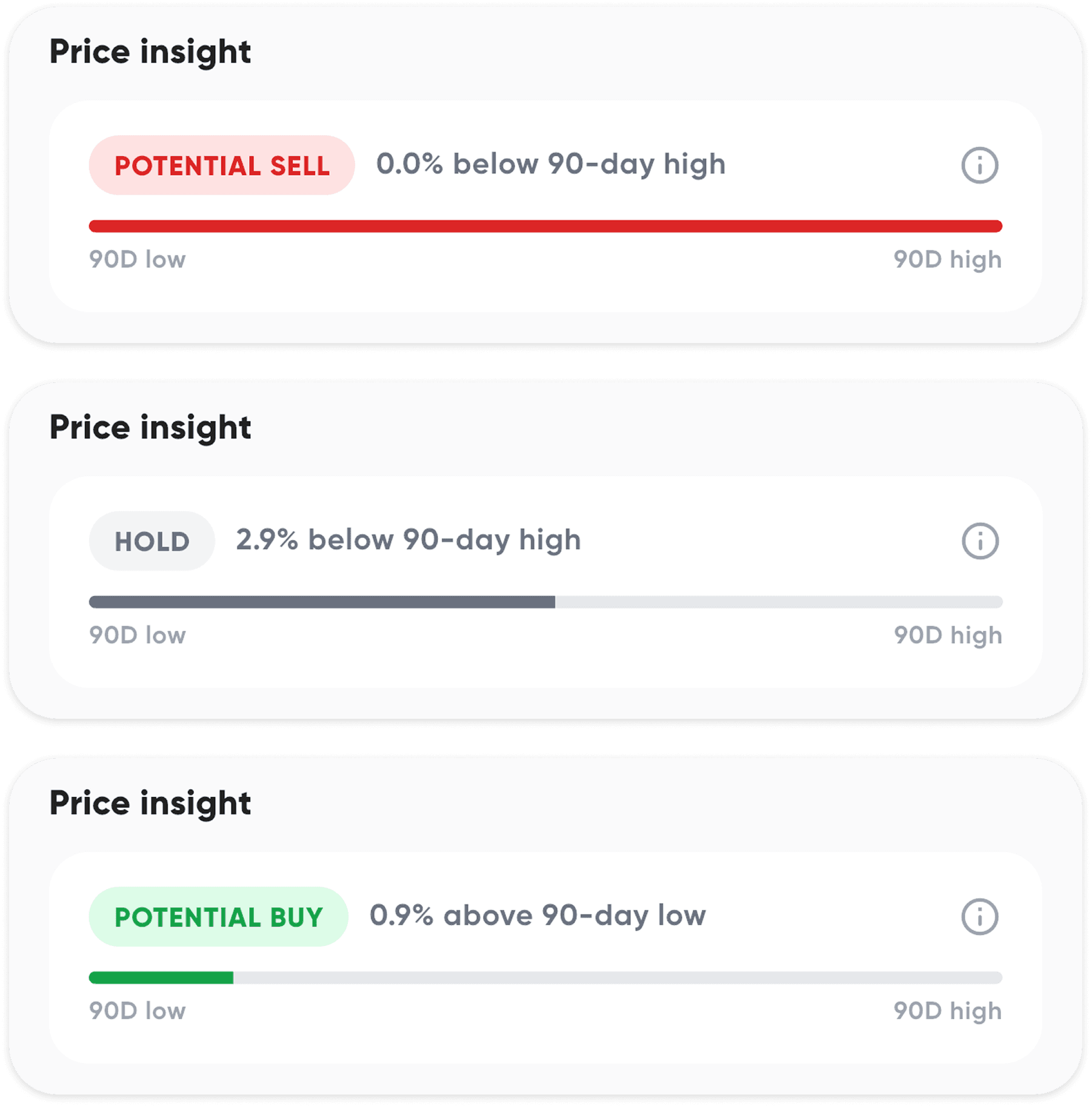 Based on 90-day price history, instantly see if you’re buying near the bottom - or overpaying.