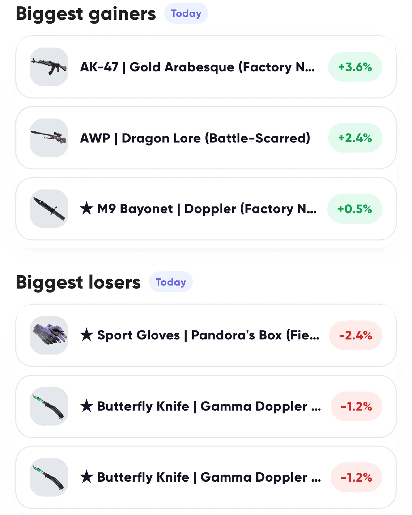 Find undervalued skins and better entry points using real data.